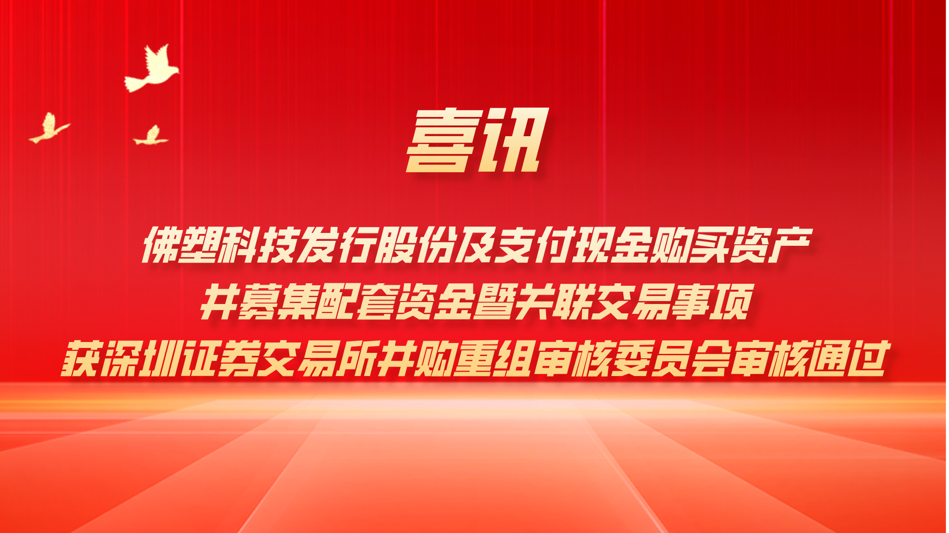 [集團新聞] 喜訊!佛塑科技發行股份及支付現金購買資產并募集配套資金暨關聯交易事項獲深圳證券交易所并購重組審核委員會審核通過